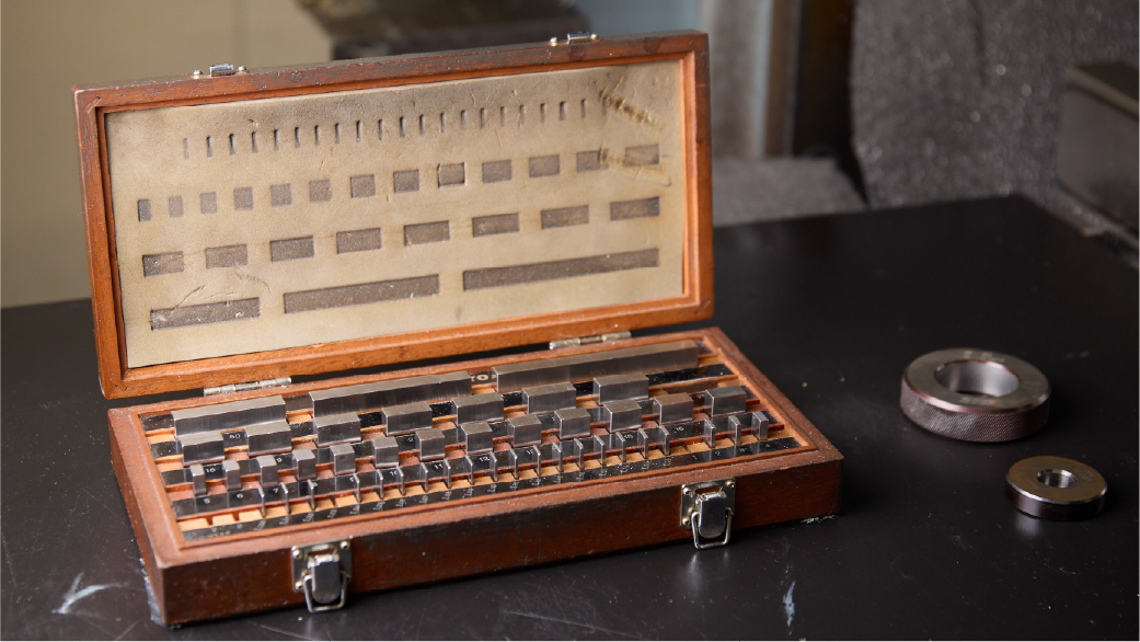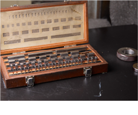 正確に仕上げられた金属ブロックで、各種測定器の校正や寸法確認に使用される標準器です。製造現場や検査工程で精密測定の基準となり、加工精度の維持に大きく貢献します。